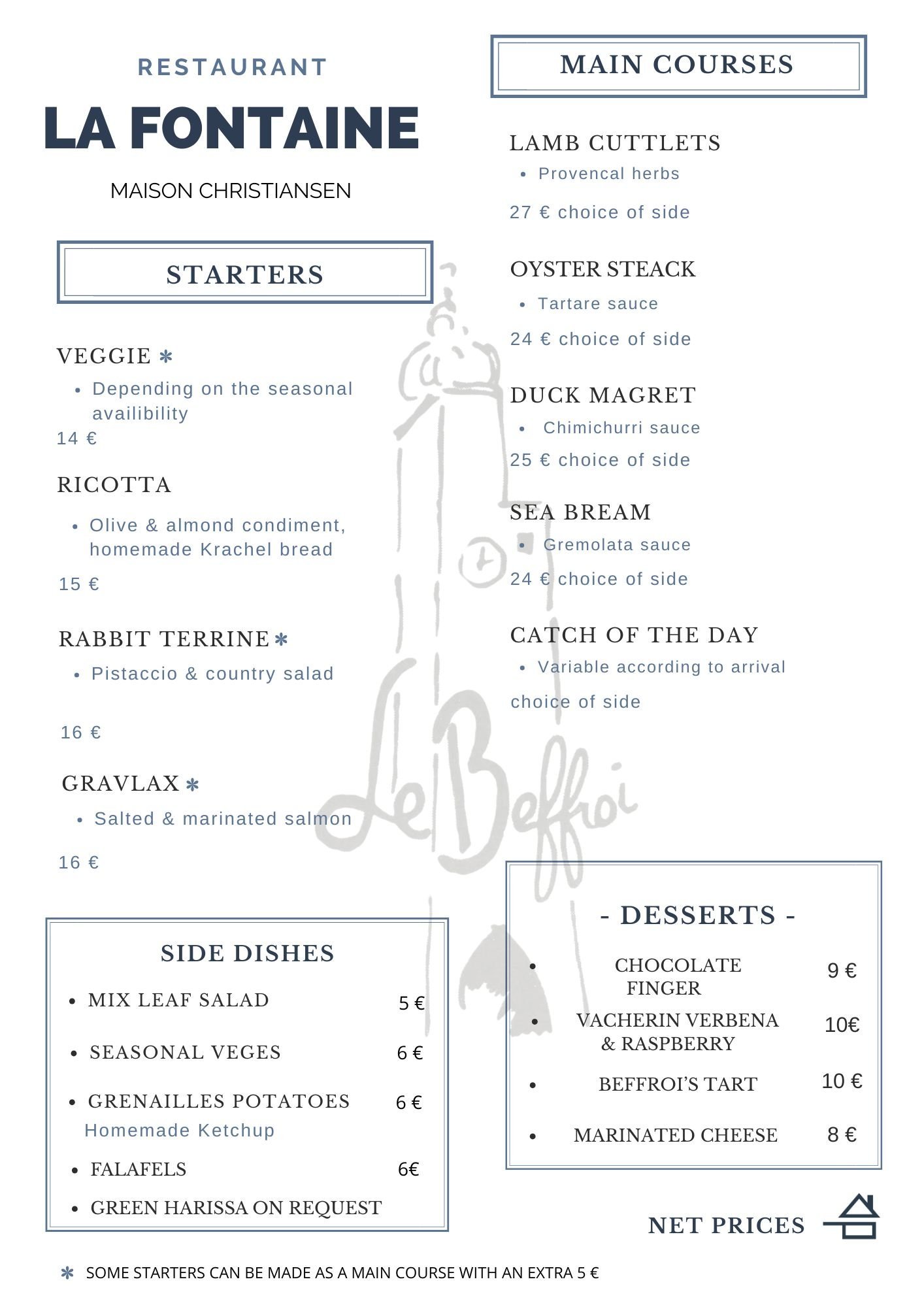 As a result, the menus offered online may be different from those in force during your visit.